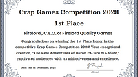 At 16 December the results of the highly awaited Crap Games Competition were announced! This game was the WINNER!!! I organized a big party with fireworks and many famous guests. It was a huge success...